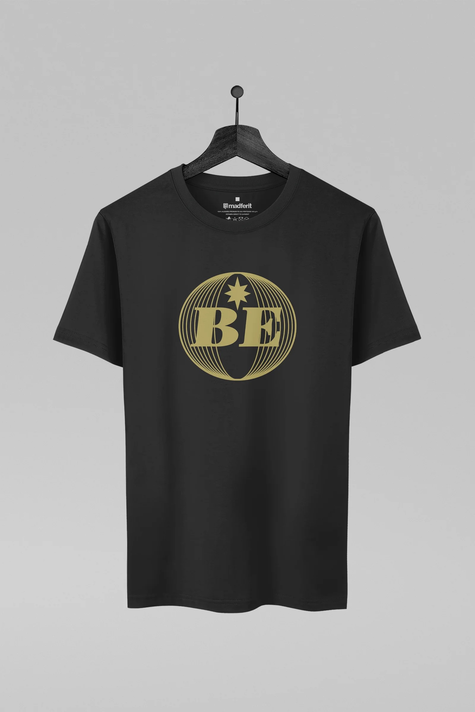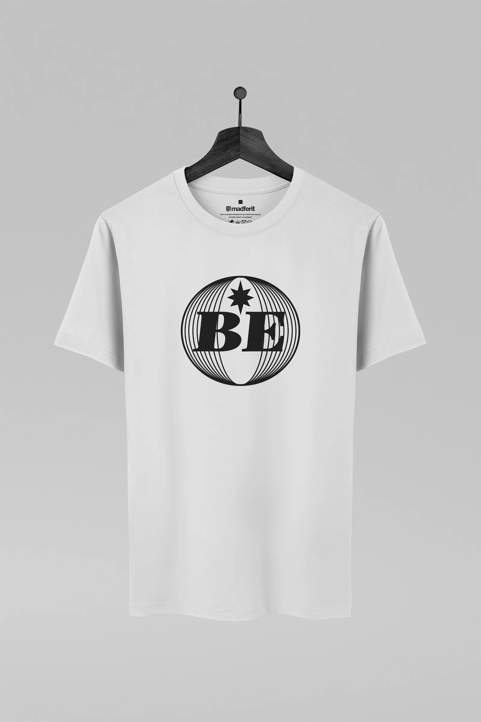 Camiseta unissex com modelagem tradicional e caimento confortável. Confeccionada em malha 100% algodão penteada premium 30.1, 180 g/m², macia ao toque. Gola redonda canelada com costura dupla e reforço ombro a ombro para maior durabilidade.
