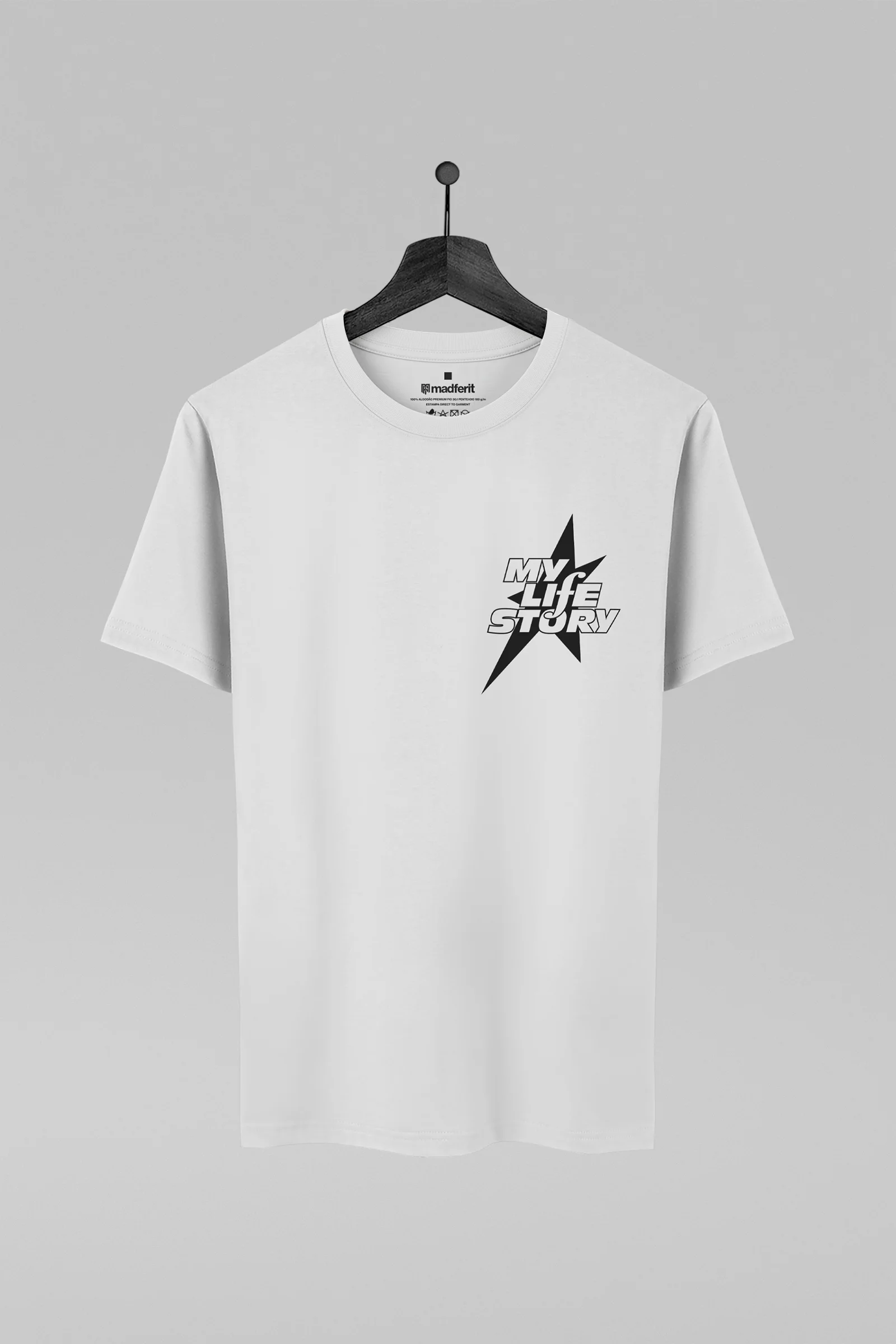 Camiseta unissex com modelagem tradicional e caimento confortável. Confeccionada em malha 100% algodão penteada premium 30.1, 180 g/m², macia ao toque. Gola redonda canelada com costura dupla e reforço ombro a ombro para maior durabilidade.